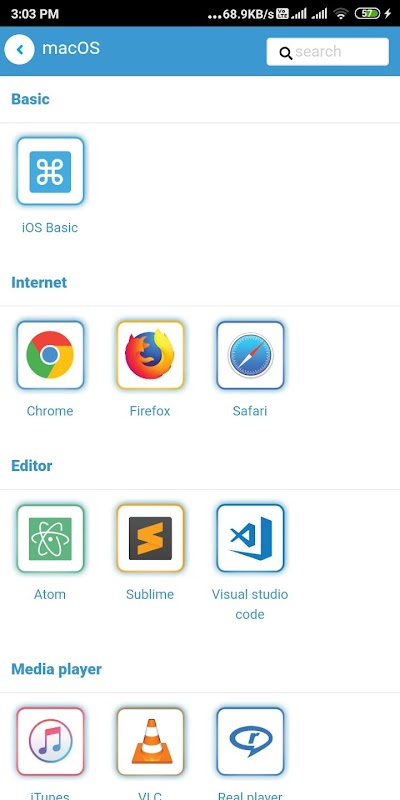 Nesta aplicação, você encontrará todos os atalhos de nível básico e avançado para todos os softwares