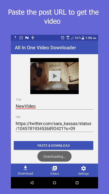 Você pode baixar qualquer vídeo Facebook, Instagram, Twitter.