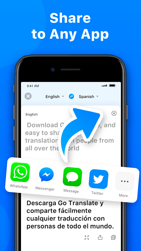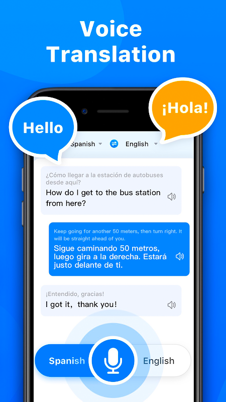 O tradutor de voz é um recurso significativo deste aplicativo tradutor. Fale e traduza notas de voz para o idioma desejado. Basta segurar o botão do microfone e falar as anotações de voz uma vez e depois traduzi-las para qualquer idioma.