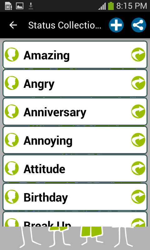 Aproveite a coleção enorme e maior de mensagens SMS e de status para diferentes ocasiões para partilhar no Bate-papo, e-mail, redes sociais com seus amigos e familiares. Melhor Aplicativo de mensagens que nunca.