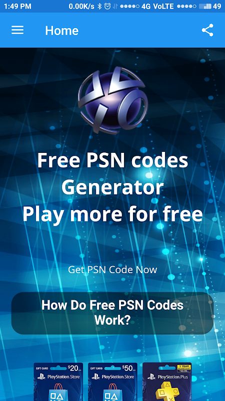 Every day we give our users a limited amount of PSN free codes, which our sponsors provide us with. If you want to Read More receive a free PSN code, all that is required of you is to go through an easy procedure where you claim your right to receive free PSN codes. We have only a few PlayStation Plus cards and a lot of common PlayStation cards. So, your chances to get the best card are rather low, but it doesn’t mean that you should give up. We allow you to use this offer many times per day. Hence, if you didn’t win this time, try our PlayStation code generator again and you will probably be get next time!