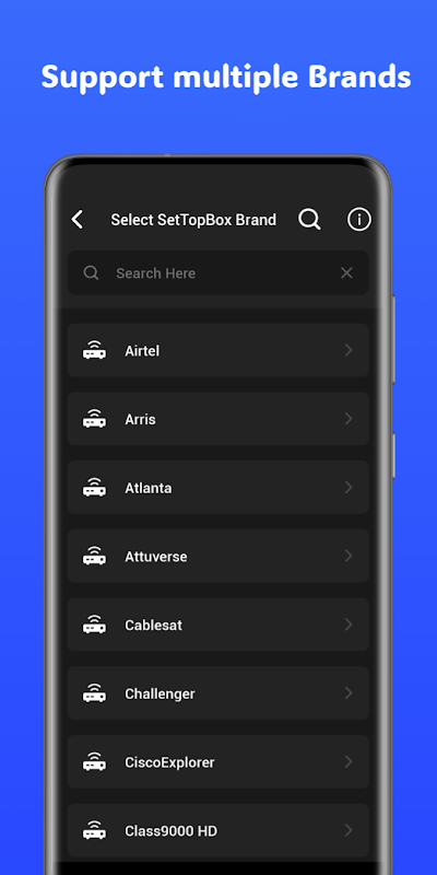 Transforme o telefone em um controle remoto completo para todos os SetTop Box e TV.
