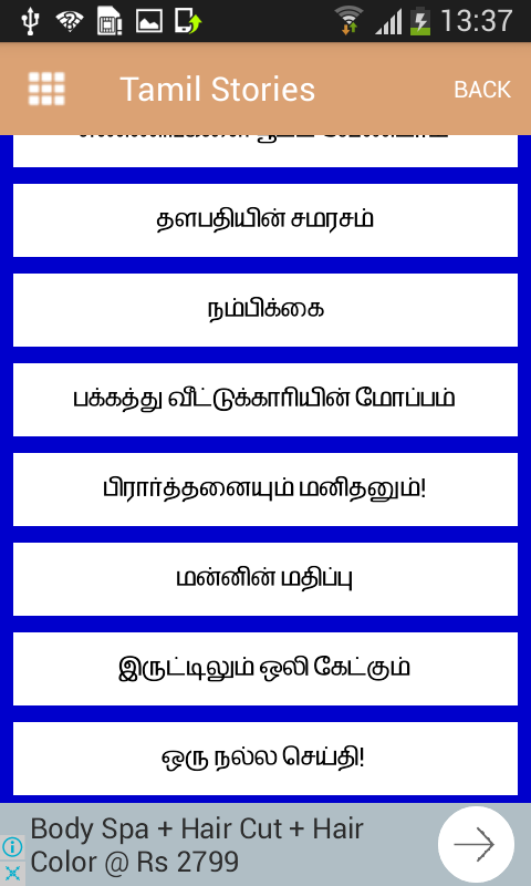 In this application, you will find all information related to various types of Tamil Stories. There are various types of stories in this application like Knowledge Stories, Moral Stories, Kids Stories, stories of Akbar and Birbal, Comedy Stories, Panchtantra stories etc. Reading about different types of stories in your own mother tongue makes it very fun and exciting to read about stories. If you open any one topic, you will find a list of various subtopics that you can use to read about your favorite types of stories. The list of stories you will find in this application won’t be found anywhere else.