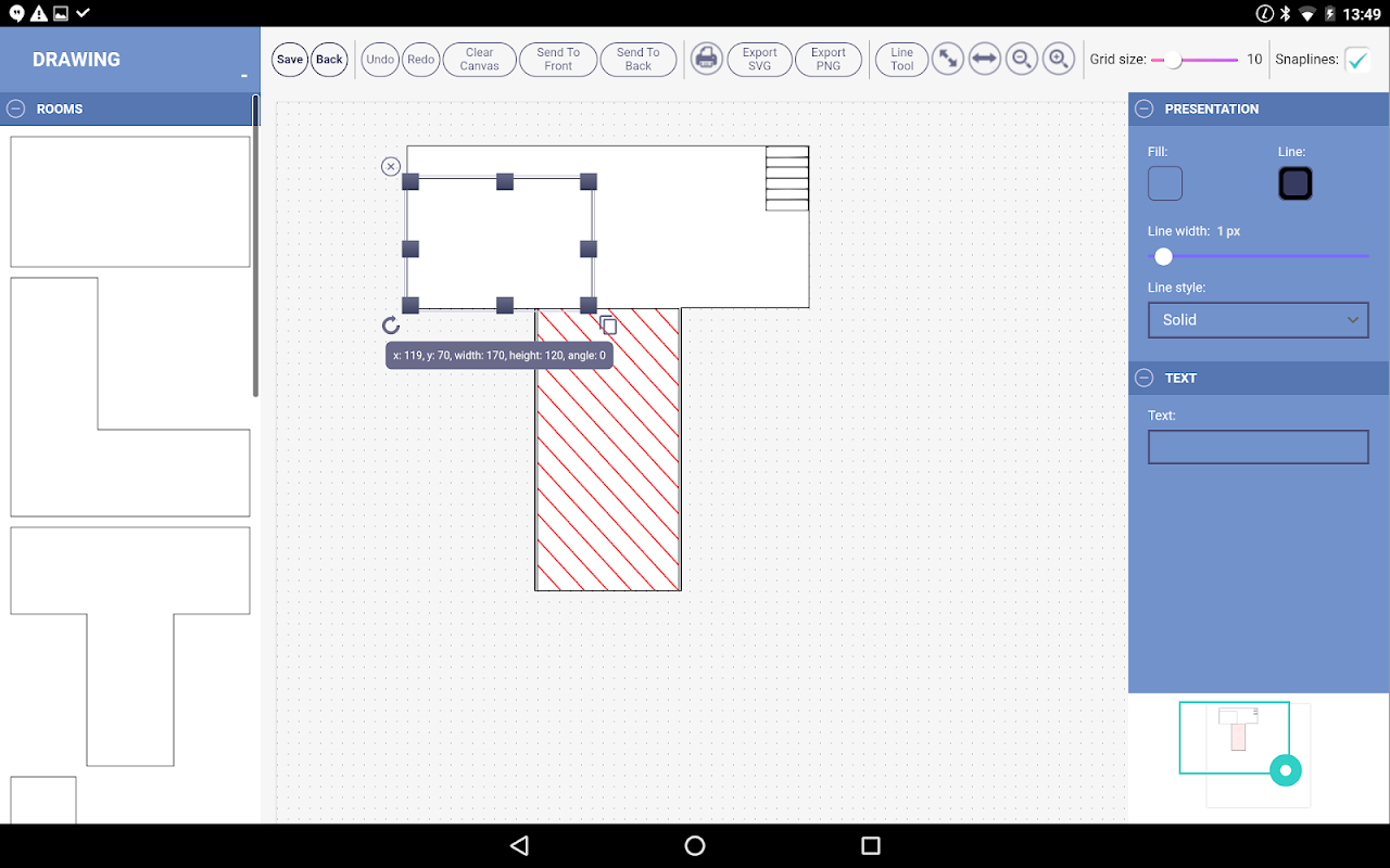 Criamos o Alpha Draw para funcionar melhor em tablets, de modo que o pesquisador de amianto tenha "espaço de trabalho" suficiente para desenhar planos de diferentes tamanhos. Você pode desenhar rapidamente a forma de uma sala, adicionar janelas, portas e outros recursos, e até mesmo móveis! Por fim, adicione seus pontos de amostra antes de carregar automaticamente o desenho da pasta do projeto Alpha Tracker.