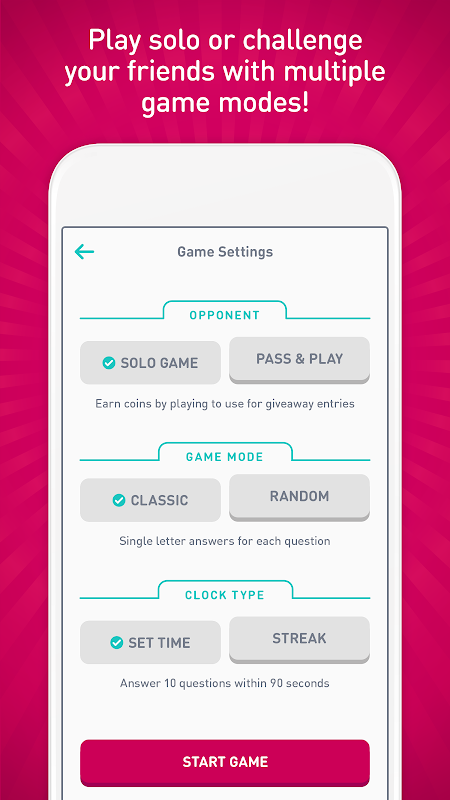 Based on the popular Hit Network radio contest, AlphaBucks features a huge range of categories to test your knowledge. Can you name an actor or actress whose name starts with B? How about a country starting with U? Rack your brains for the most uncommon answers to score maximum points, earning you more coins!