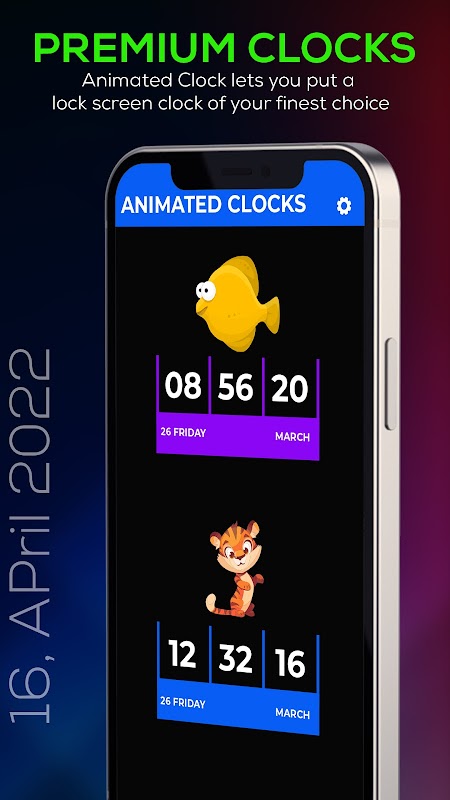 Multiple type of Animated Clocks is added. Using Always on Display feature you can set animated clocks lock on screen.