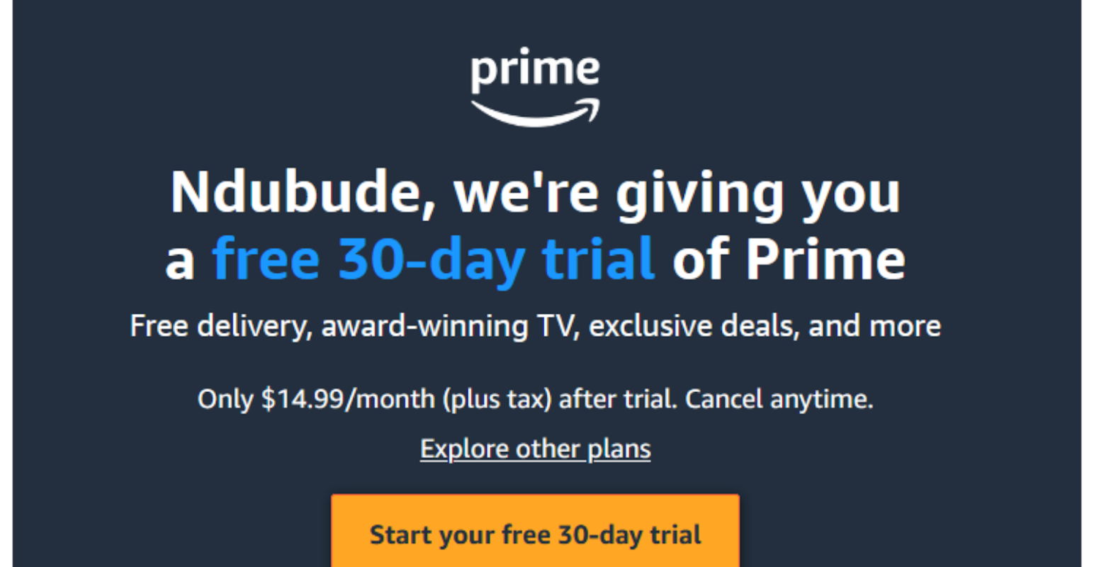 Use o Amazon Prime por 30 dias grátis sem cobranças!