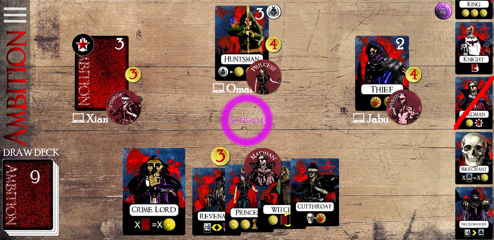 If you prefer head-to-head aggression, then perhaps the Assassin will become your favourite card. Or perhaps you prefer the subtlety of the Ambassador or the mind-bending alliances that alter the game, courtesy of the Hierophant. Or maybe, you choose just to watch the world burn, in which case the Anarchist or the Madman might be more your speed. Whatever your preference, try not to become too predictable, because, like good poker players, good Ambition players will read your tells and shut you down.