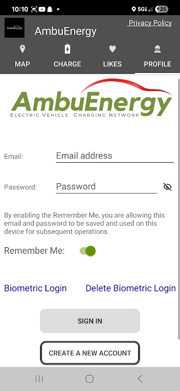 Aplicativo Estação de Carregamento de Veículos Elétricos para AmbuEnergy EV Network