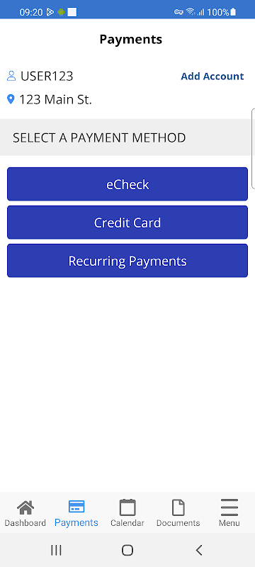 The Make A Payment button color now adheres to the color set by your management company. In addition, the navigation buttons at the bottom of the screen now remain blue.