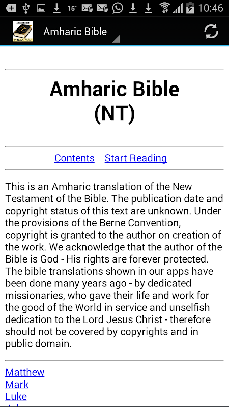 Este aplicativo inclui o ebook completo da Bíblia Sagrada (Novo Testamento) em amárico idioma.
