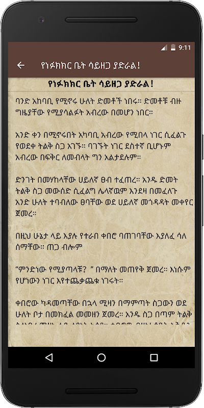 ይህ አፕሊኬሽን የአማርኛ ተረቶች, ምሳሌያዊ አነጋገሮችና እንቆቅልሽ አንድ ላይ አጣምሮ የያዘ እያዝናና እንዲያስተምር ታስቦ የተዘጋጀ ነው.