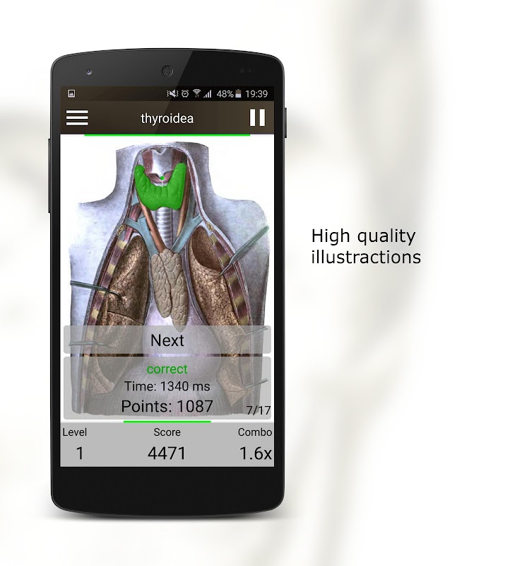Anatomia quiz é um jogo, que fornece uma maneira fácil de aprender estruturas anatômicas, como ossos, músculos ou órgãos.