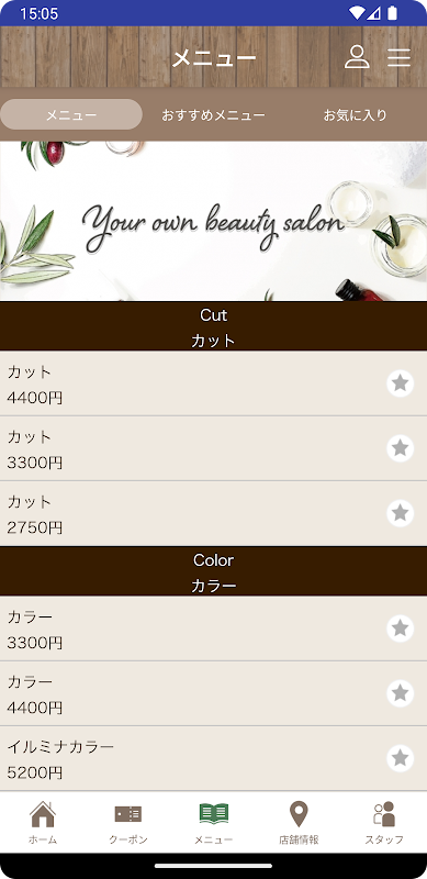 Você pode facilmente verificar o menu e o preço do salão de beleza no aplicativo.