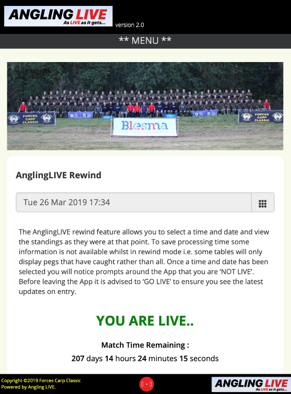 O Angling LIVE é um sistema de pontuação projetado para ser 100% ao vivo. Cada peixe é adicionado ao sistema durante o processo de pesagem, portanto, não há atrasos para atualizações.