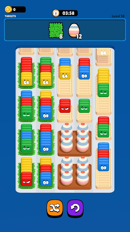 Teste suas habilidades de resolução de quebra-cabeças com níveis divertidos e desafiadores! Classifique os cubos por cor e complete os alvos para progredir!