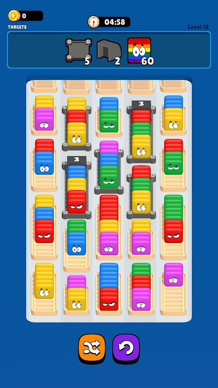 Cubos irritados: Classifique todos! combina o melhor da jogabilidade de classificação e match-3, oferecendo níveis divertidos e desafiadores cheios de cubos coloridos e emoção!