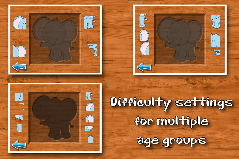 As an extended challenge for your toddler, each puzzle can be solved at various difficulty levels.