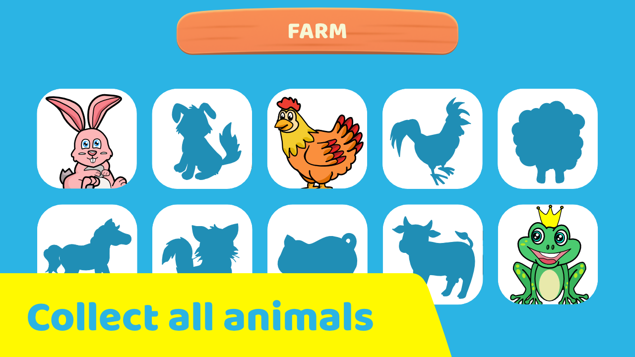 Descubra todos os animais, jogos fantásticos para crianças e sons de animais para crianças.