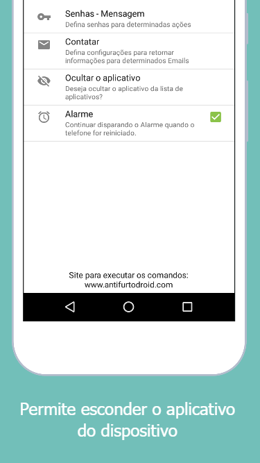 • Permite esconder/ocultar o Anti Furto Droid da lista de aplicativos;