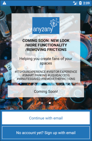 O aplicativo any2any permite que os usuários na plataforma any2any para acessar com segurança a sua localização sem a necessidade de teclas físicas ou cartões, mas usando o seu Bluetooth LE telefone habilitado Nossa solução permite Co-working e espaço líquido para criar serviços de valor acrescentado, servem para as empresas e criar experiências melhor curada de inquilinos corporativos, visitantes e funcionários.