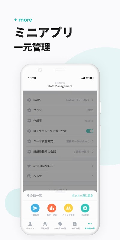 Com o anybot, você pode criar mini-apps e chatbots sem a necessidade de desenvolvimento, e salvar e classificar automaticamente as informações detalhadas do cliente coletadas lá, permitindo a agregação automática de dados. O aplicativo anybot é especialmente adequado para empresas que operam contas oficiais LINE!