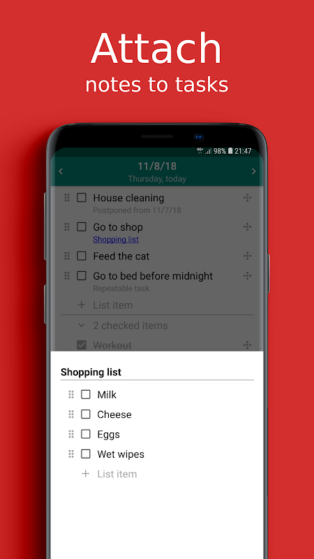 - Anexar notas com listas ou texto livre para tarefas