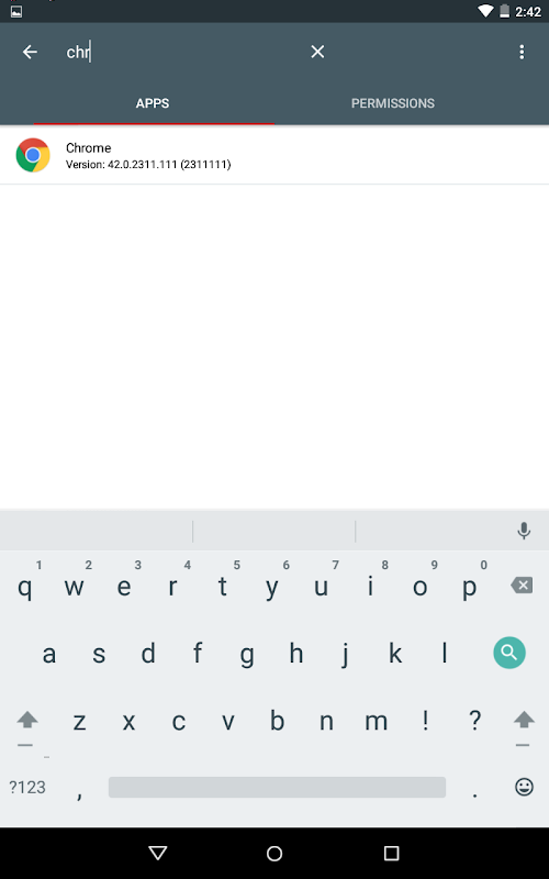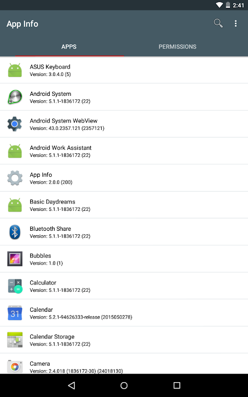 - Ver um aplicativo instalado com a sua versão informação e permissões, as permissões de busca com o nome eo nome do grupo,