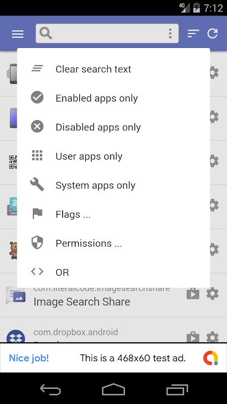 * Você pode filtrar a lista de aplicativos pela caixa de pesquisa na parte superior da tela, que corresponde parcialmente a qualquer nome de aplicativo / nome de pacote.