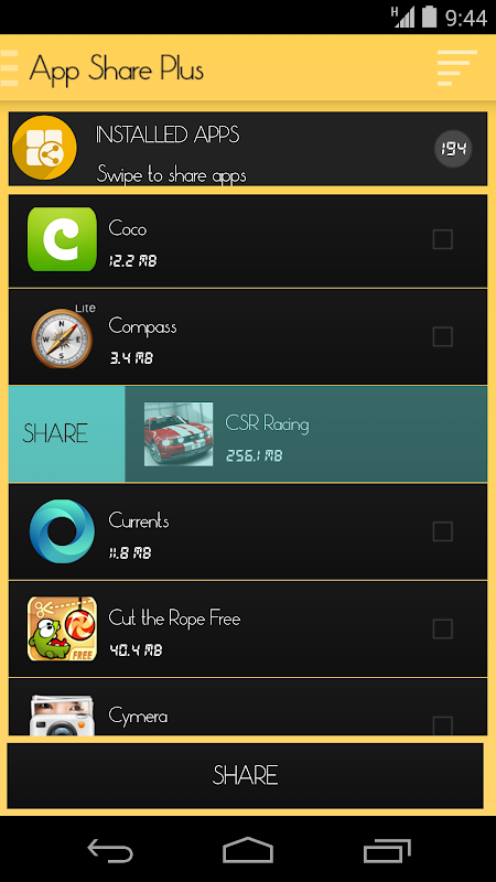 All you have to do is select apps that need to be shared and just click the "Share" button. That's it!