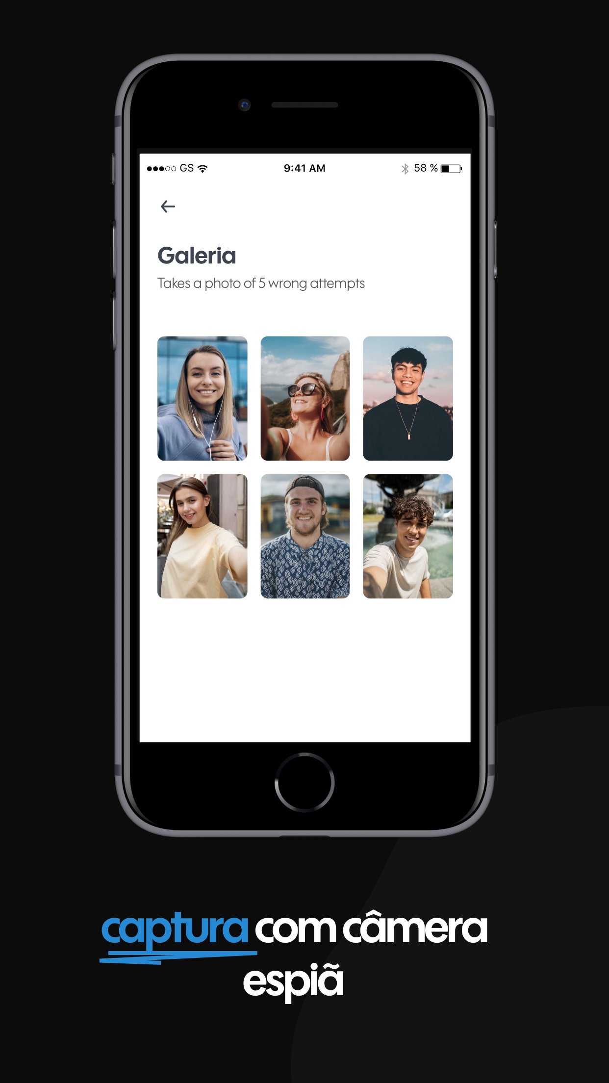 Se alguém tentar fazer login no seu aplicativo com a senha errada, uma foto será tirada automaticamente. Ninguém pode visualizar seus aplicativos sem permissão, 100% de proteção de privacidade.