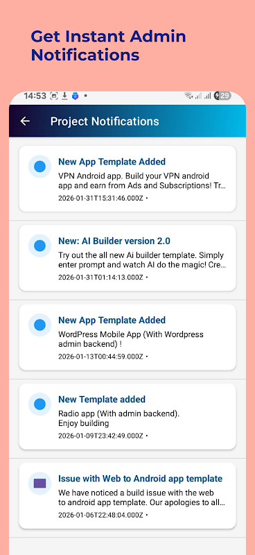 App Notifications for project status and builds