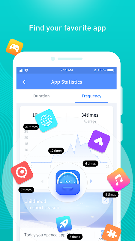 AppTime shows detailed usage statistics of each app. You can easily find your favorite app or hard-to-refuse app. The data can be shared as a beautiful card. Share your favorite apps and share the improvement of your time management.
