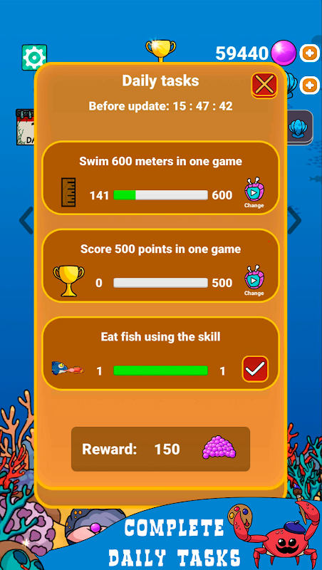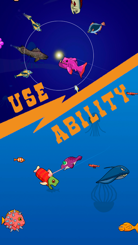 Coma e cresça! Descubra novas espécies de peixes e use suas habilidades!
