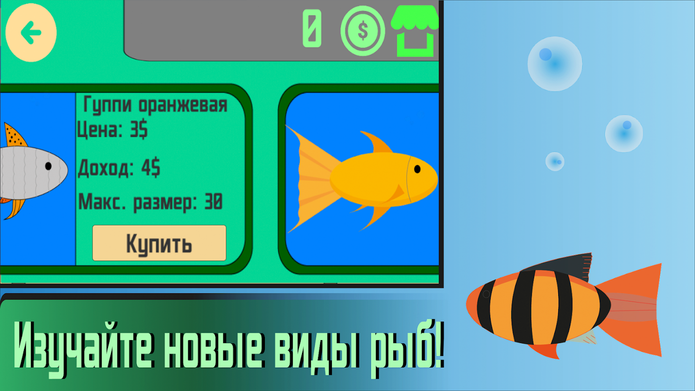 Добро пожаловать в игру "Симулятор аквариумиста". Здесь вам предстоит заниматься выращиванием и продажей декоративных рыб для аквариума.