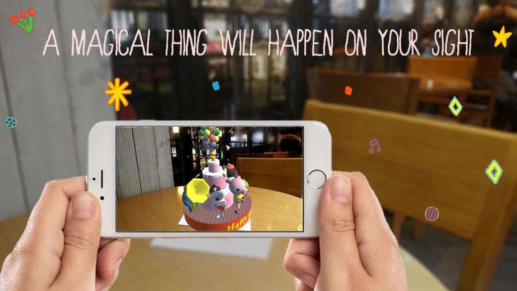 2. Launch the AR.POP APP and scan Gooly Gooly Postcard to see what happens. A magical thing will happen on your sight!
