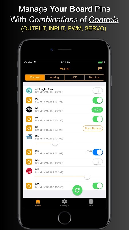 - LCD: você pode enviar quaisquer dados do Arduino para seu aplicativo móvel.