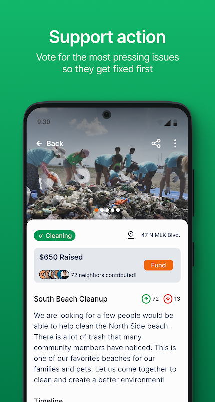 Melhore sua área relatando problemas, votando, financiando ou trabalhando neles!