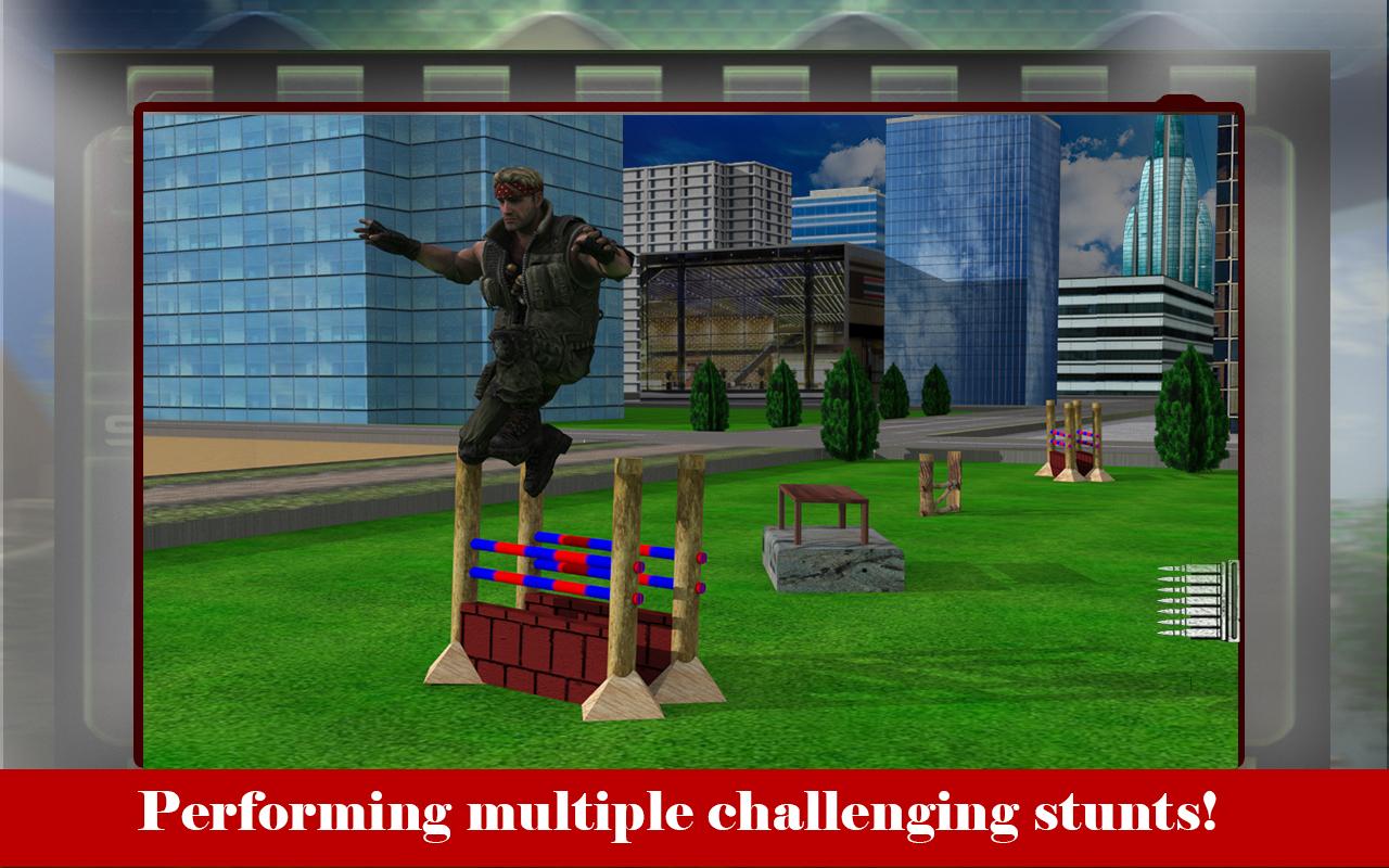 como um oficial estagiário, você deve adquirir as habilidades de correr rápido, saltar através de obstáculos, controlando helicóptero e outros veículos para que você possa se juntar ao exército e se tornar um oficial de comando perfeito. em cada nível, você será fornecido um desafio específico de saltar, atravessando obstáculos certos, barreiras, etc. olhais cada nível traz um sabor verdadeiramente única. diferentes missões desafiadoras, ambiente realista, armas, controles de fotografia amigáveis, inimigos furiosos, agradáveis gráficos 3D e grandes efeitos sonoros estão esperando por você. você tem que completar os níveis dentro do tempo determinado.