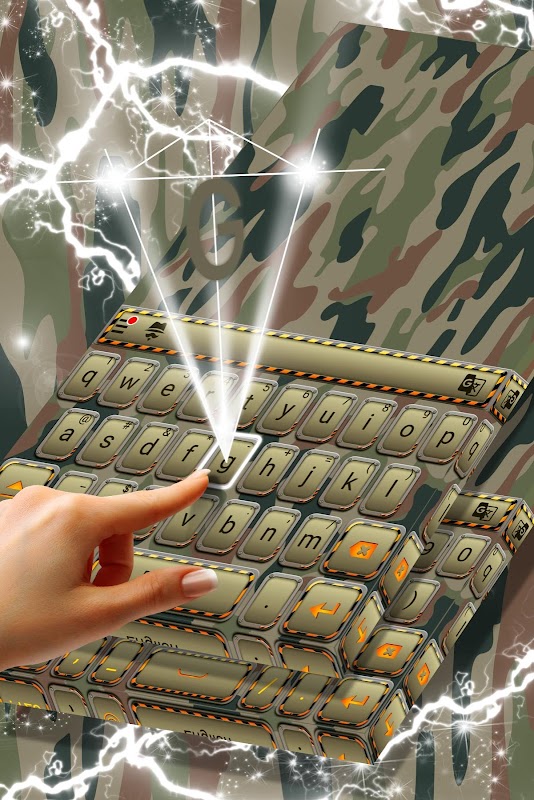Com um grande design inspirado camuflagem, o Tema do teclado do exército é uma pele de teclado incrível que aplica uma imagem de fundo especial para o seu teclado e também ajusta a forma das teclas para transformar completamente a forma como o teclado parece. Experimente hoje!