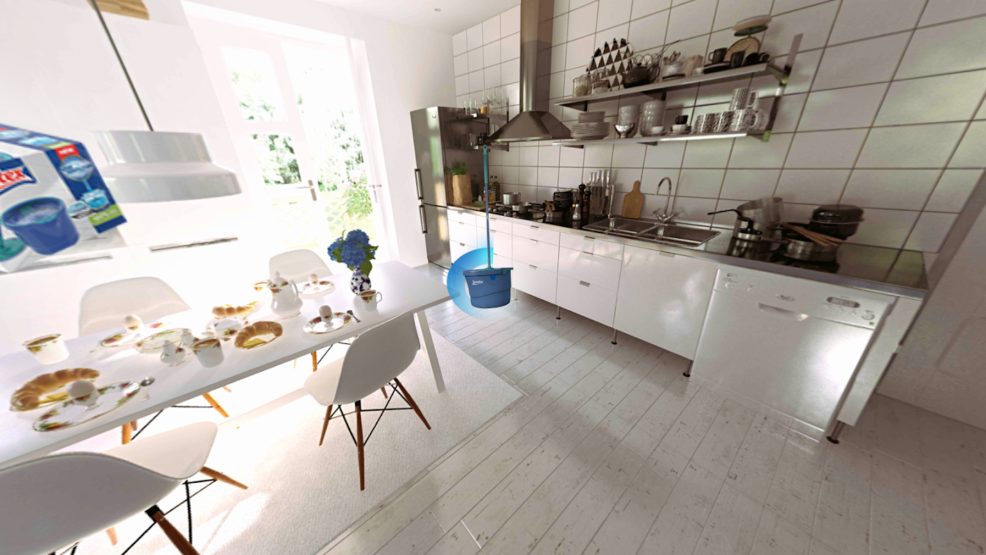 Exibe os novos produtos Spontex em realidade virtual.