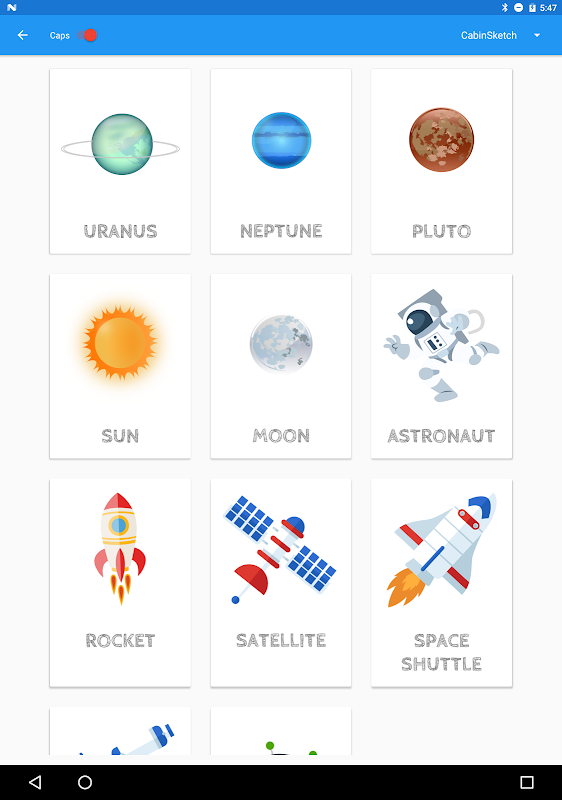 Astronomy for Kids app comes with cartoon like pictures and pronouciation of each word.