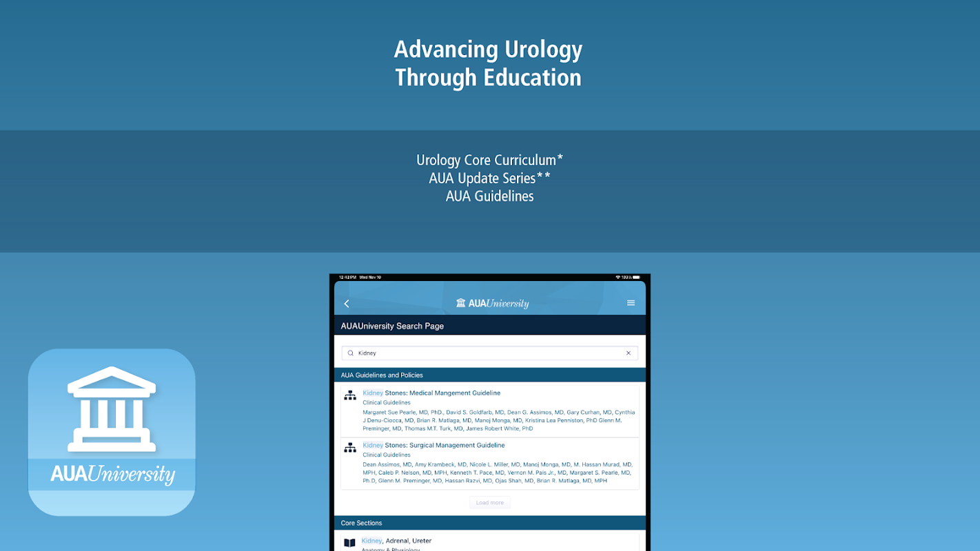 * Pesquisa ampla do aplicativo para Currículo Básico AUA, Biblioteca de Vídeo Cirúrgico, Série de Atualização, Diretrizes e Políticas AUA e muito mais.