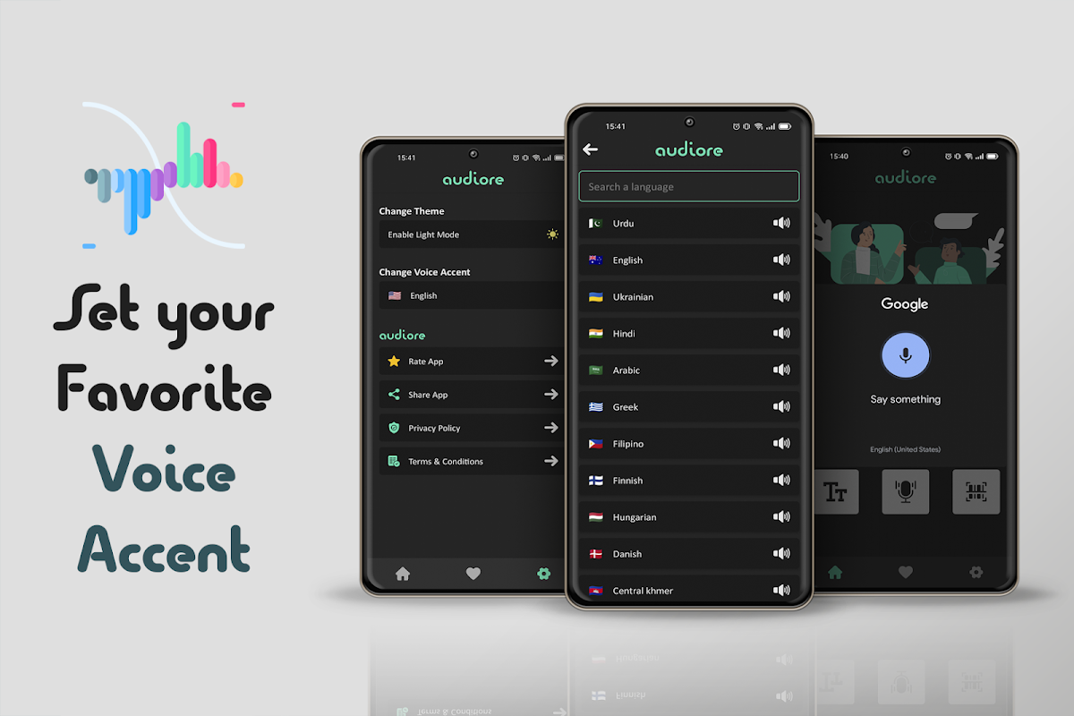 Audiore is a quick tool to reach out to when in doubt. Simply enter the text and you will hear a pronunciation of the word. Also you can take a picture of a text from camera to pronounce it. Not only picture, you can choose an image from gallery to pronounce and also you can speech a text from by getting from PDF. Learn the different pronunciations of words in 60+ Accents of the world.
