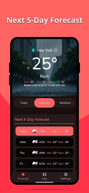 Confira atualizações meteorológicas em tempo real com base em sua localização ou em uma cidade personalizada.