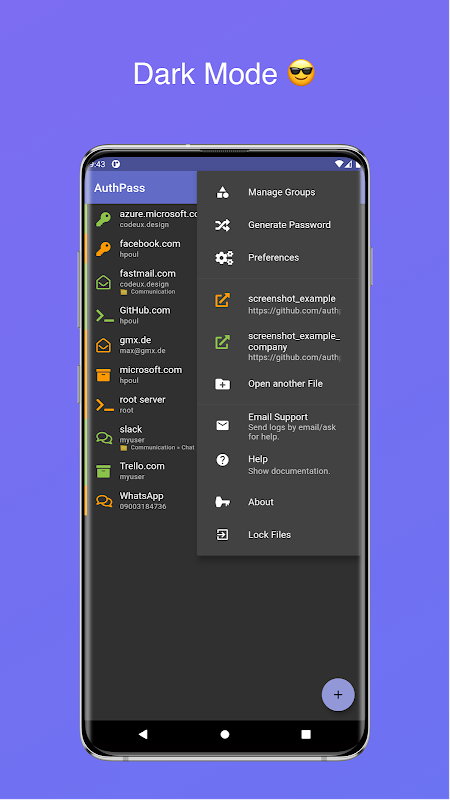 AuthPass é um gerenciador de senhas autônomo com suporte para o popular e comprovado formato Keepass (kdbx 3.x AND kdbx 4.x 🎉️). Armazene suas senhas, compartilhe em todos os seus dispositivos e encontre-as facilmente sempre que precisar fazer login.