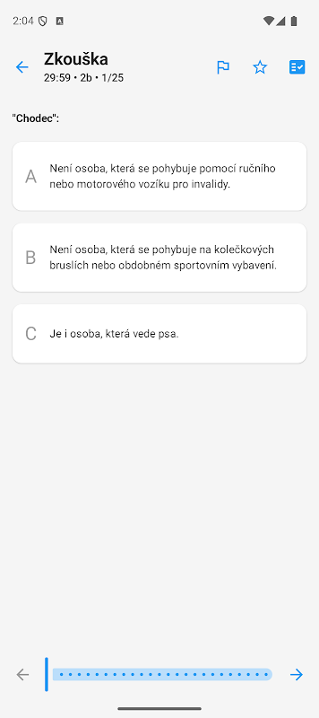 As questões da prova estão atualizadas até 1º de novembro de 2025. Você costuma perguntar sobre a diferença no número total de questões no aplicativo para cada grupo em comparação com o site do Ministério dos Transportes da República Tcheca. Essa diferença se deve ao fato de o site do ministério listar o número total de questões para todos os grupos em conjunto.
