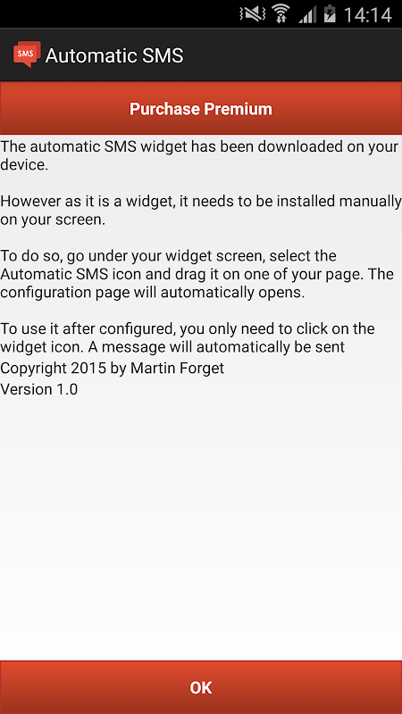 This application allows you to create a widget that you can place wherever you want and that will send a message to the people you want ( up to 4 simultaneously) at the simple touch of this widget .