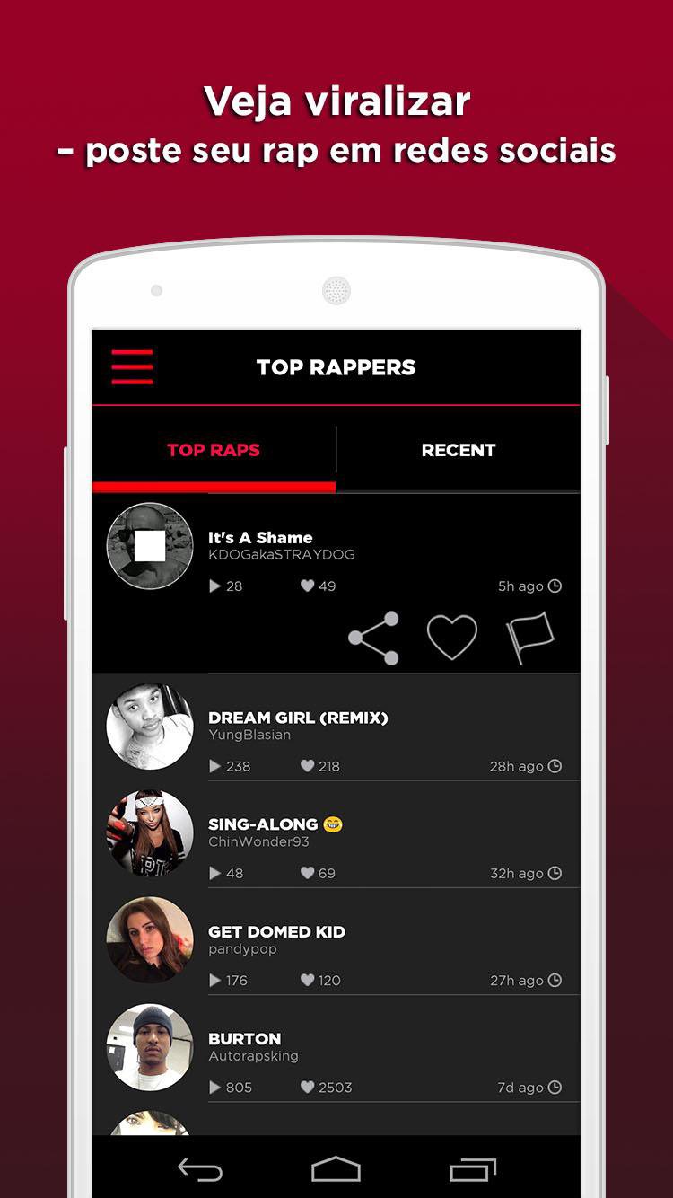 - Compartilhe seu rap via SMS, e-mail, Facebook e Twitter. Torne-se viral.