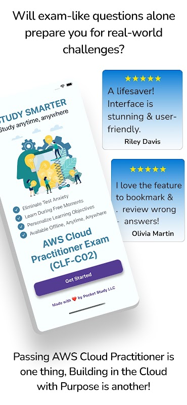 Prepare-se com confiança usando o Pocket Study para o exame AWS Certified Cloud Practitioner (CLF-C02) — desenvolvido por especialistas em nuvem e alinhado aos objetivos mais recentes do exame AWS. Com um dos maiores bancos de questões práticas do AWS Cloud Practitioner disponíveis — mais de 3.900 questões atualizadas — este aplicativo vai muito além de simples perguntas e respostas. Cada item prático inclui explicações detalhadas, ajudando você a entender os fundamentos dos conceitos de nuvem, dos serviços da AWS e de cenários do mundo real. Seja você iniciante em computação em nuvem ou esteja aprimorando seus conhecimentos sobre AWS, o Pocket Study ajuda você a dominar o essencial com a qualidade profissional em que milhares de alunos confiam.